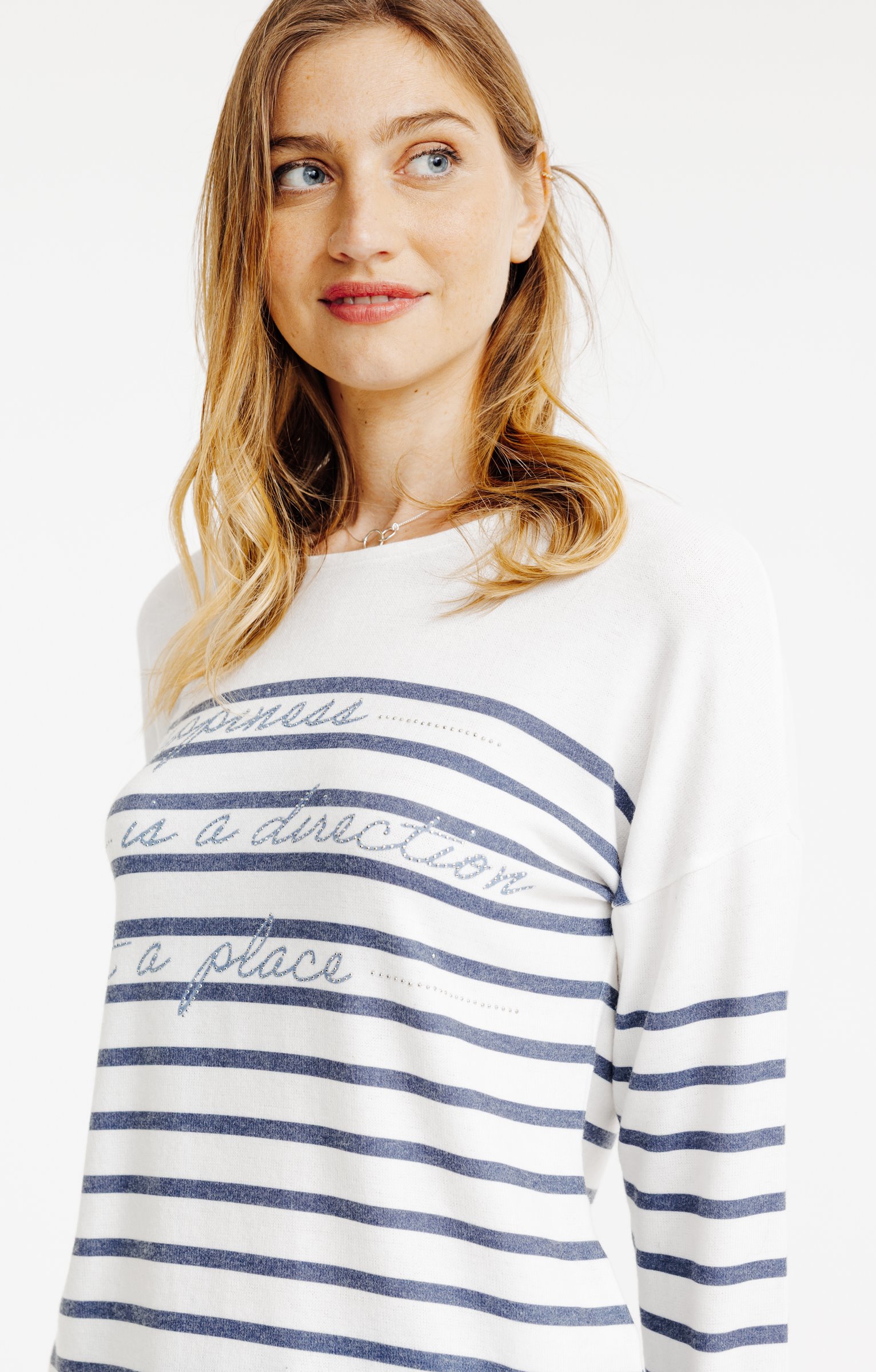 Pull imprimé placé et strass