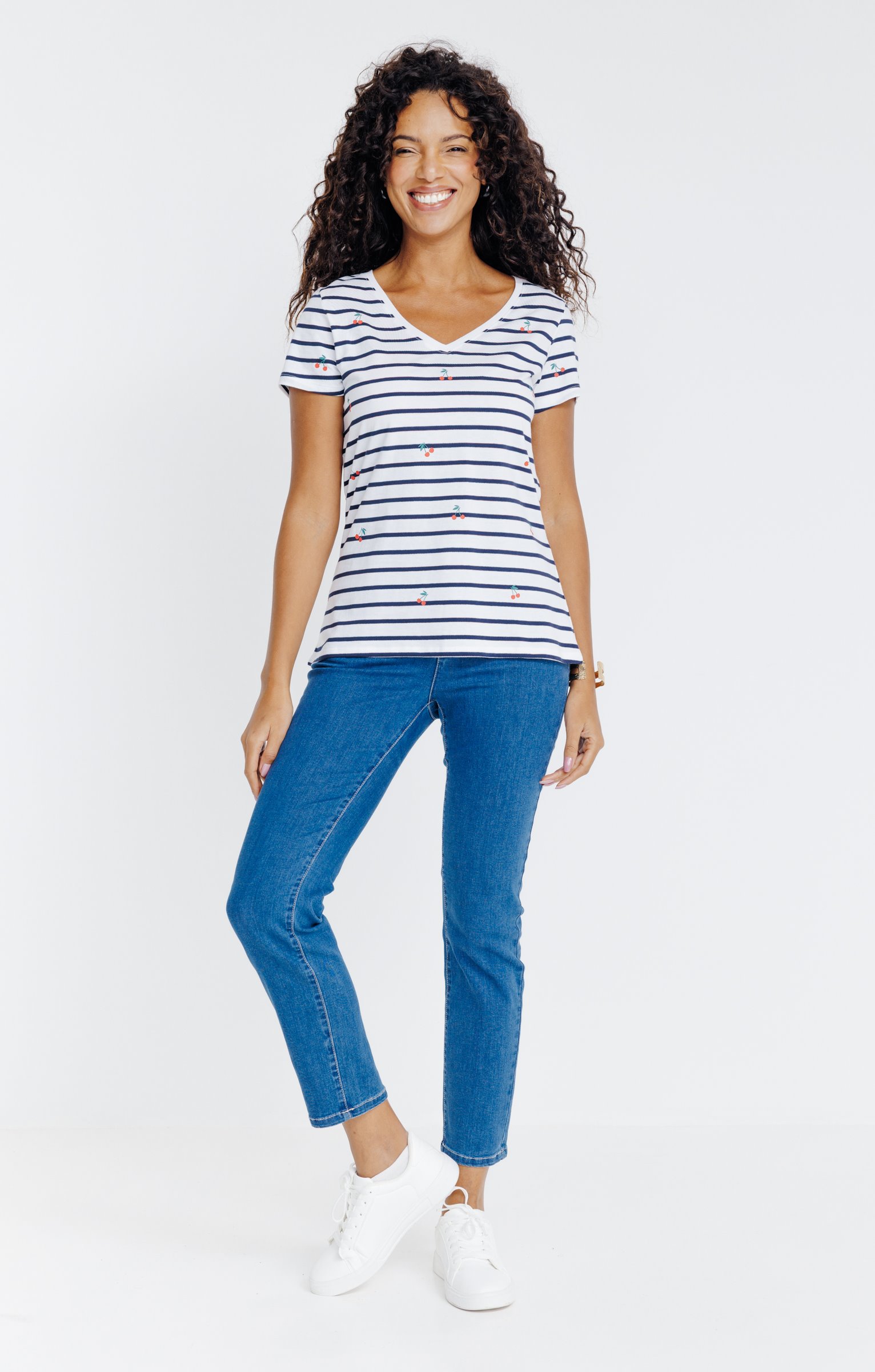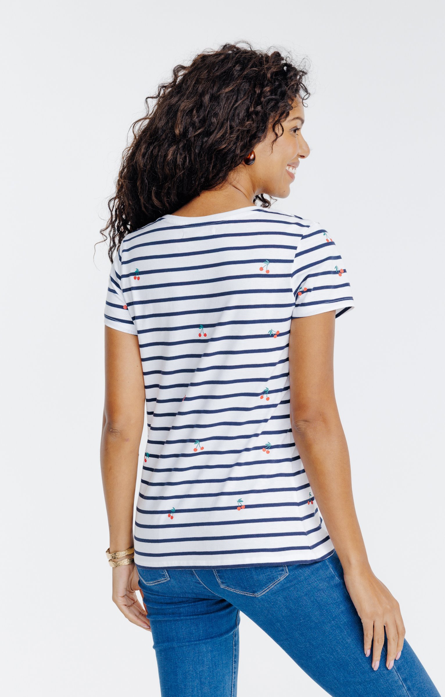 Tee-shirt rayé cerises à manches courtes -