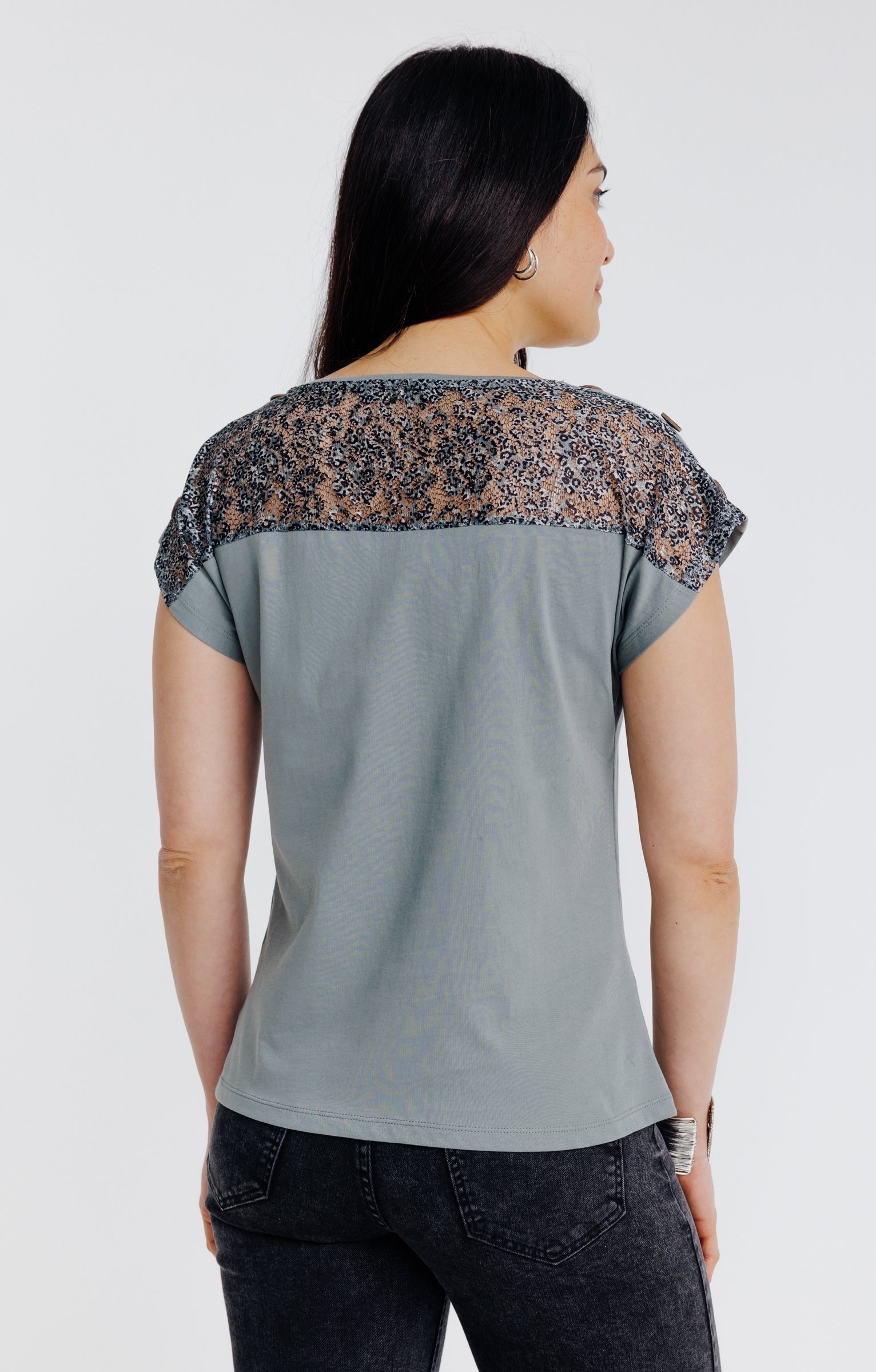 Blouse unie avec galon dentelle