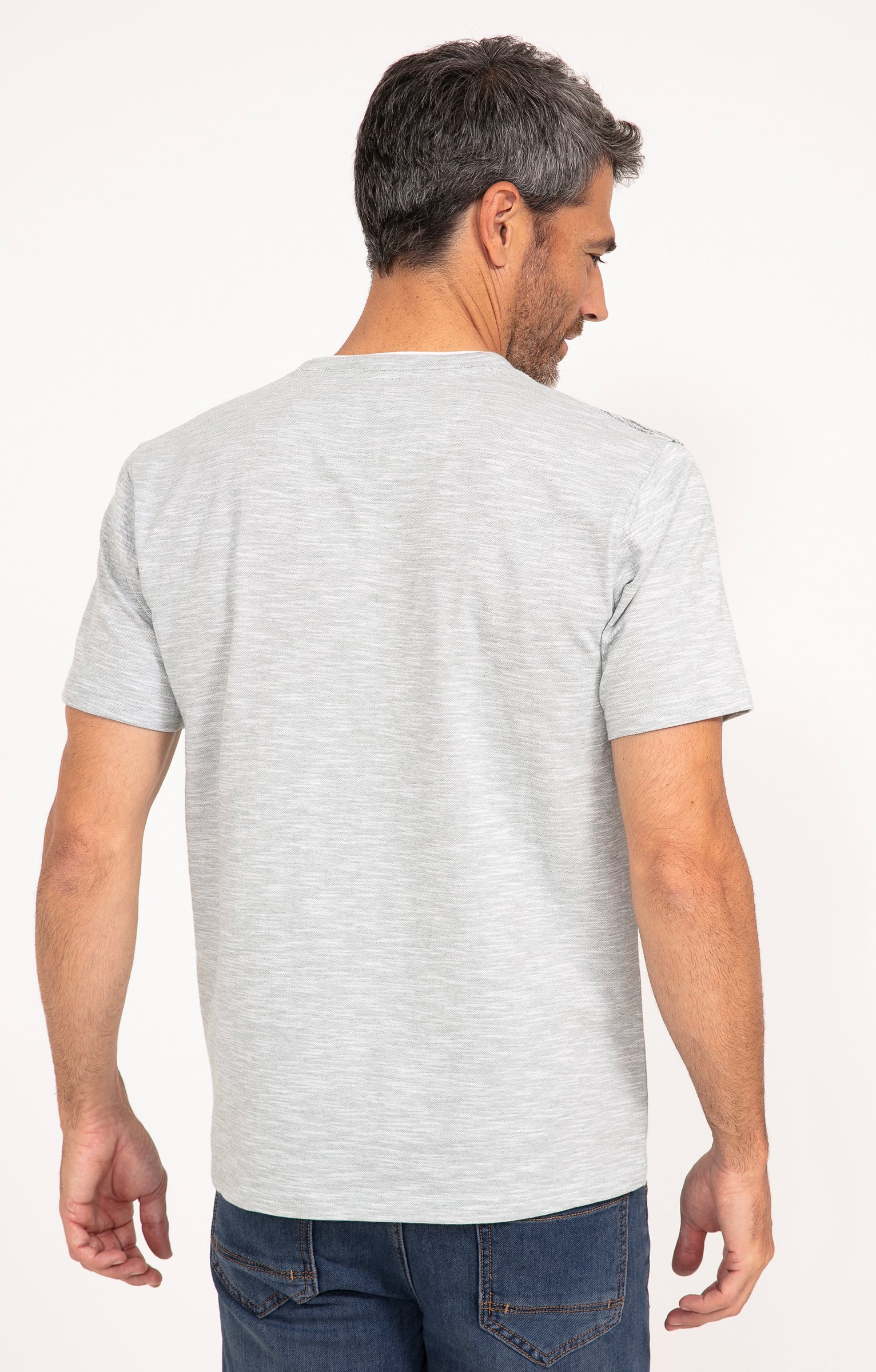 Tee-shirt col v mix matières