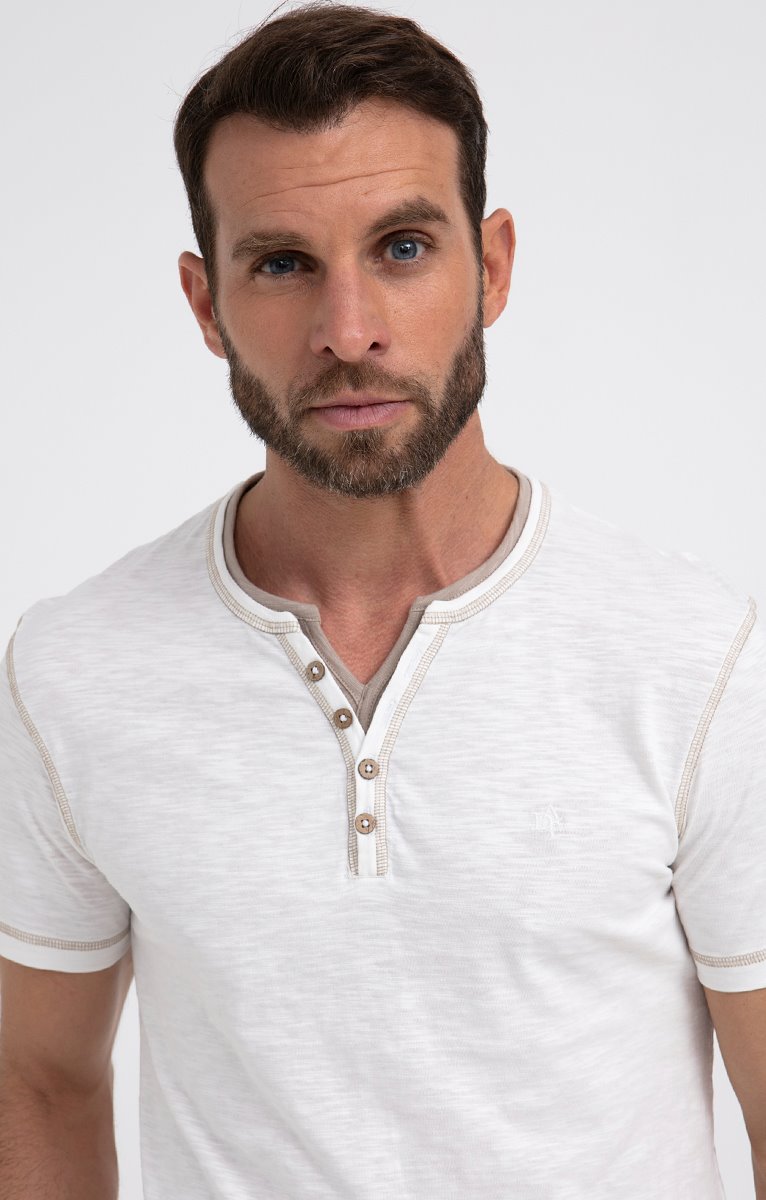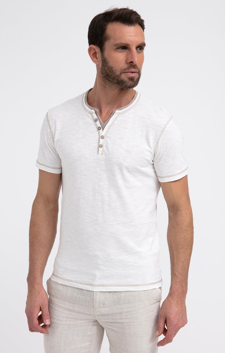 Tee-shirt imprimé col mao et poches